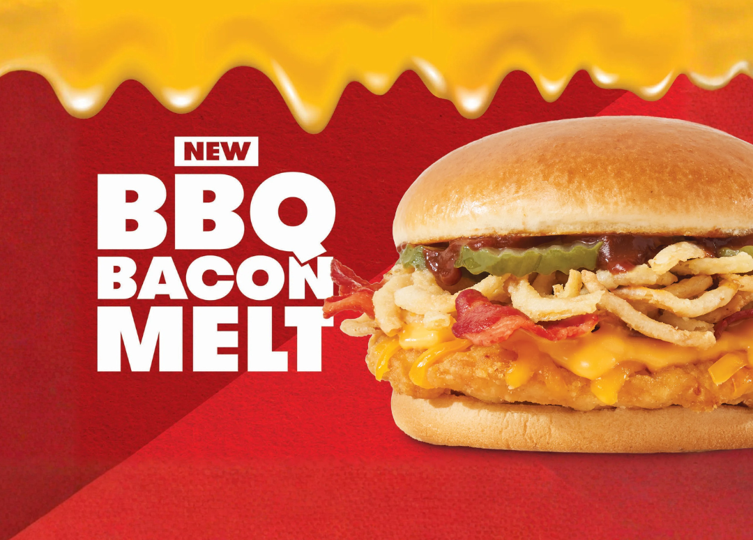 Two fresh beef patties, American cheese, 6 strips of Applewood smoked bacon, ketchup, and mayo.